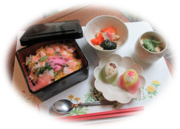 レクリエーションで指先の運動もかねて、ひな祭りの飾りつけを入居者様に取り組んでいただきました。